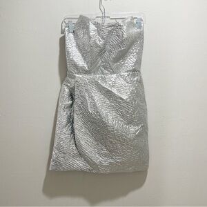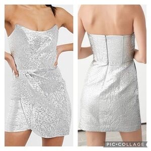 & OTHER STORIES Women’s Silver Foil DRAPED STRAPLESS JACQUARD DRESS Size 38 US S