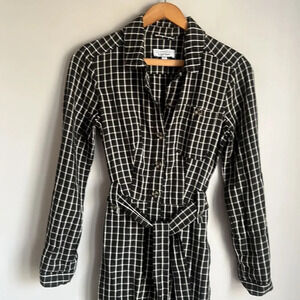 Lyocell belted utility style jumpsuit with an allover check pattern, featuring tortoise button closures and a single chest patch pocket. Side welt pockets