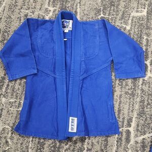 It is a size 0. The jacket measures about 17" from armpit to armpit, 43" from one sleeve end to the other sleeve end, and 24" shoulder to bottom.