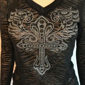 Otomix Shear Tee Shirt With Bling Faux Rhinestones Wings and Cross