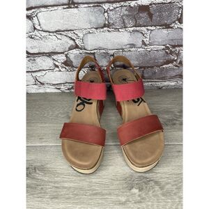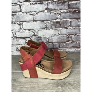OTOT Bushnell Platform Red Leather High Cork Wedge Sandals Women Sz 8.5M US/39EU