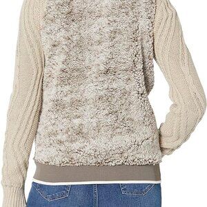 Stay warm and stylish with this women’s sherpa fleece vest, featuring a soft plush exterior and a zip-up front. Great for layering through fall and winter.