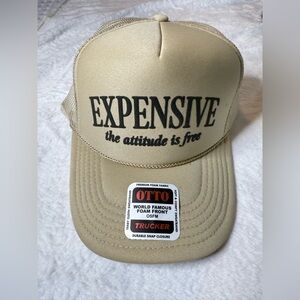 Make a statement with the OTTO beige trucker hat. Features 'Expensive' design. Ideal for casual style. NWOT