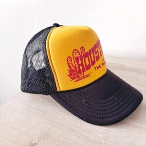 OTTO Mens Trucker Hat HOUSTON I AM THE PROBLEM Yellow Black mesh