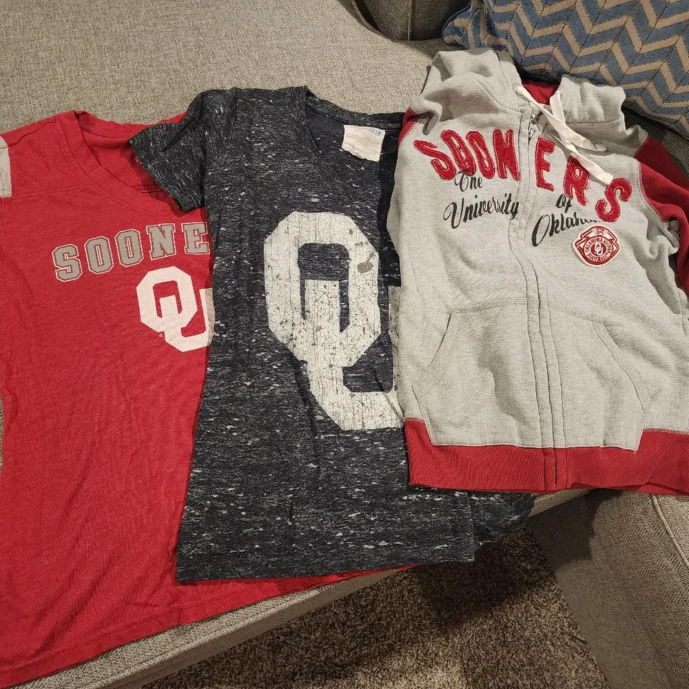 womens s/m Oklahoma University bundle. 2 shirts and one zip up hoodie