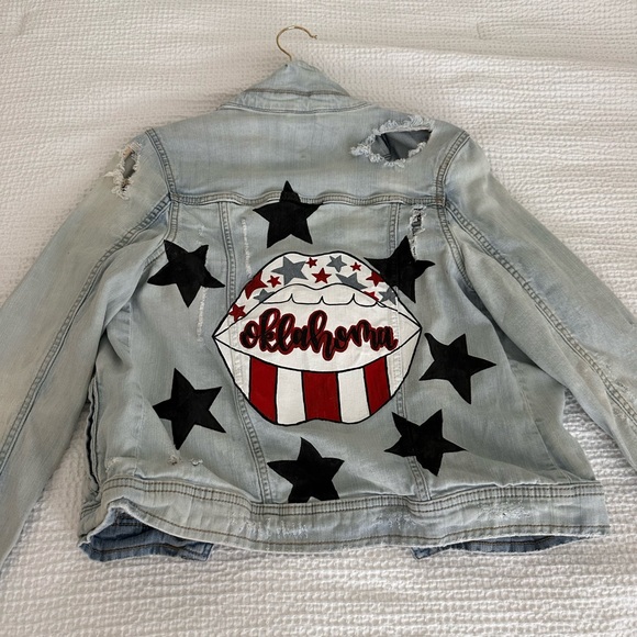Only worn a few times, painted university of Oklahoma jacket!