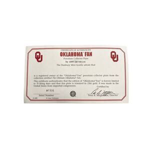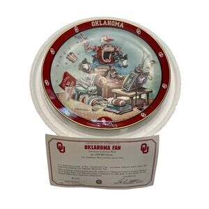 This plate is titled "OKLAHOMA FAN" and is in new condition. It was made over a limited time of 75 firing days and is no longer available. The plate is porcelain and trimmed in 23kt gold. Each plate has a unique serial number on the back of the plate and is stored in the original styrofoam holder.