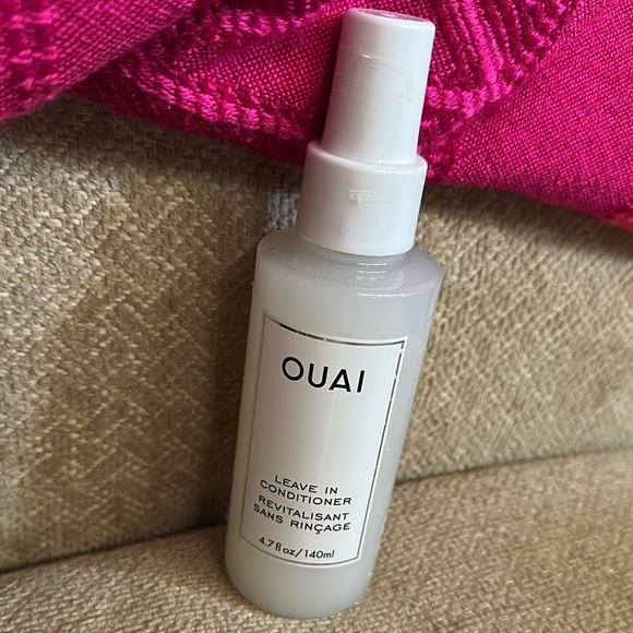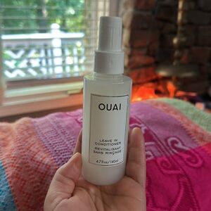 OUAI Leave In Conditioner in a sleek white bottle. Perfect for nourishing your hair.