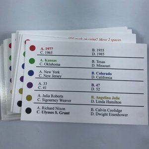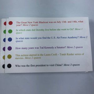A family game of fun facts about the USA. Learn about the history, heroes & heritage of the USA as you play. Roll the color die to see which category of question is yours to answer. Follow the state flags around each individual game board. Nonsmoking home