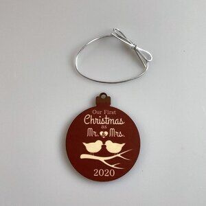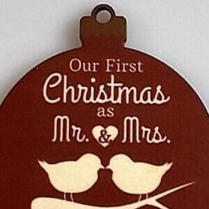 OUR FIRST CHRISTMAS MR AND MRS 2020 KISSING BIRDS WOOD RED