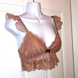 OUT FROM UNDER Chloe Lace Swiss Dot Romantic Bralette Light Sand Womens Medium