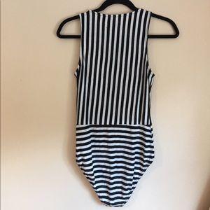 Striped onesie, mesh down the middle front, not see through, buttons at the crotch