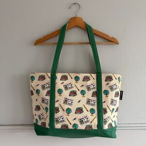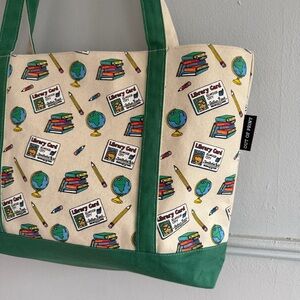 Great condition zippered tote featuring a design of Arthur and DW’s library cards. Bag has a full length zip closure. 100% canvas - sturdy and thick. One inner slip pocket.