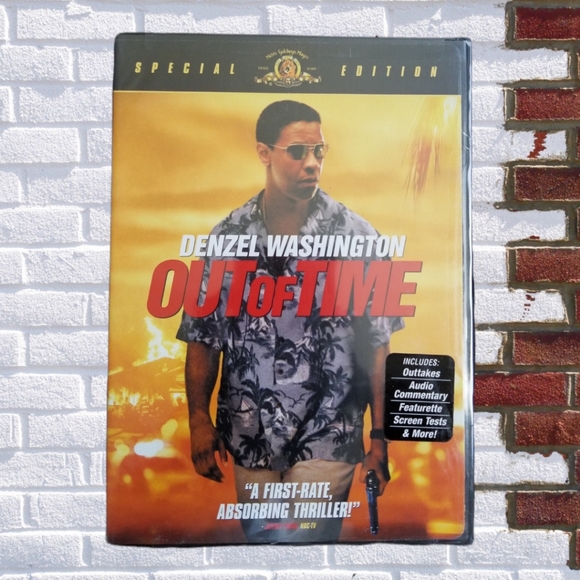 DVD video, Out of Time, special edition, Metro Goldwyn Mayer trademark, P-13, Dolby Digital, NTSC, 105 minutes, Denzel Washington.
