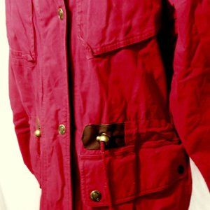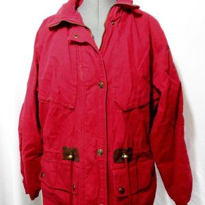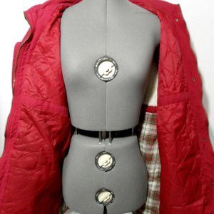 OUTBROOK Insulated Winter Parka Trench Coat Jacket L Red Quilted Fleece Denim