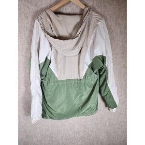OUTDOOR COLLECTION Women's Green White Hooded Full Zip Windbreaker SZ M