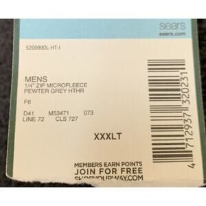 YOU ARE PURCHASING (1) New with Tags - OUTDOOR LIFE Big & Tall 1/4 Zip Fleece Pullover Sweatshirt Jacket Men's Sz XXXL