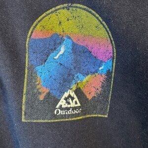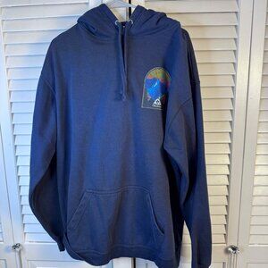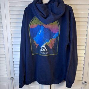 OUTDOOR MENS XL NAVY MOUNTAIN GRAPHIC PULLOVER HOODIE DRAWSTRING COMFY CASUAL