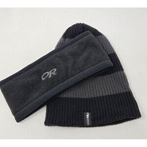 OUTDOOR RESEARCH WINTER HAT BUNDLE GREY STRIPE REVERSIBLE BEANIE & GREY HEADBAND