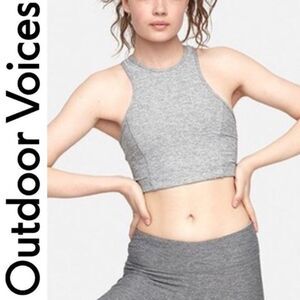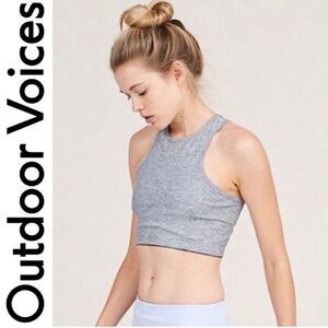 OUTDOOR VOICES Athena Crop Top Racer Back Yoga Active Sports Bra Gray Striped XS