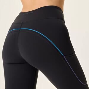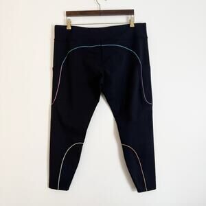 Black and rainbow reflective 'FrostKnit 7/8 leggings by Outdoor Voices.