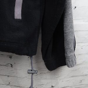 BLACK & GREY FLEECE 1/4 ZIP PULLOVER JACKET SIZE LARGE ZIPPER POCKETS BY OUT OUTDOOR URBAN TERRAIN PRE OWNED USED THE LEFT ZIPPER POCKET IS RIPPED SHOWN IN LAST PHOTO ZIPPERS WORK PERFECTLY