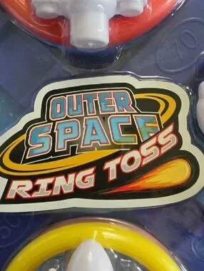 game with bright yellow and orange rings. This kids toy features astronaut and rocket targets for fun, active play. The colorful design adds excitement while encouraging hand-eye coordination. Includes multiple rings and targets for group play.