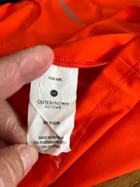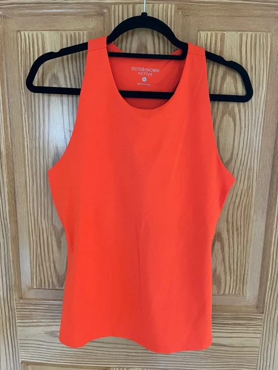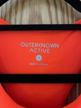Women’s OUTERKNOWN ACTIVE tank in Saturated Bright Orange. Logo on front and back are printed in reflective silver. Super cute on, tighter fit tank. Like new condition.