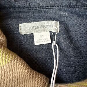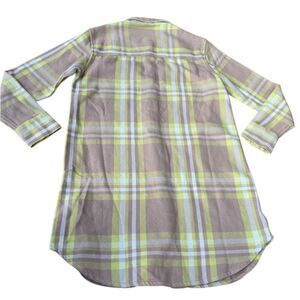 OUTERKNOWN Blanket Shirt Small Flannel Plaid Beige Yellow Tunic Dress NEW $168