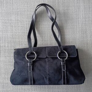 Estée Lauder Soft Black Suede Shoulder Bag Double Silver Ring Detail