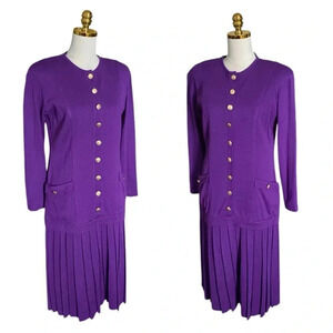 OUTLANDER Womens Vintage Purple Pleated Wool Blend Tiered Knit Midi Dress Small
