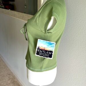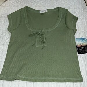 OUTLAW: Green Crop Top with lace up front Size M. NWT