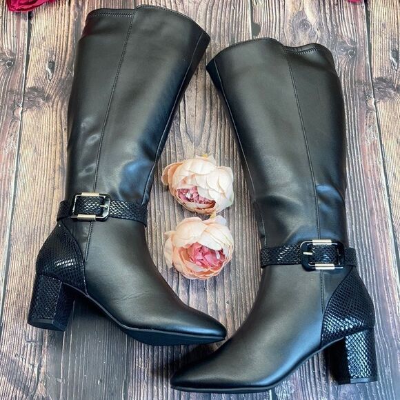 Dress up skinny jeans and accent pencil skirts in the gorgeous lines of Karen Scott's Isabell buckled boots.
