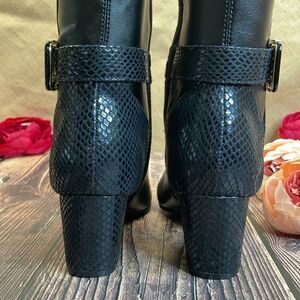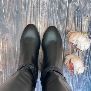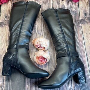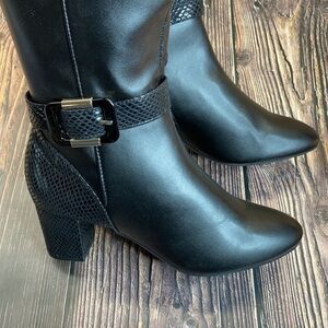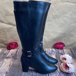Approx. 2-1/4" block heel; Shaft height: 14-1/2"; Circumference: 14-1/2"