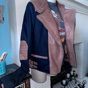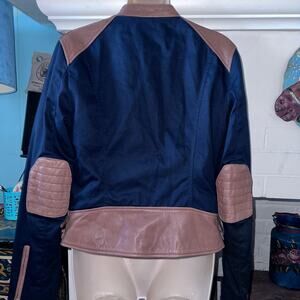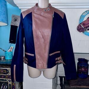 OUTSTANDING BICOLOR RALPH LAUREN LEATHER & COTTON MOTO BIKER RACING JACKET M