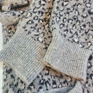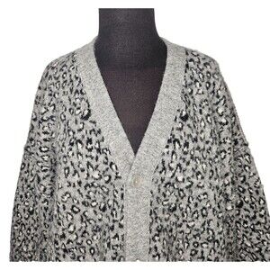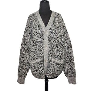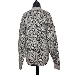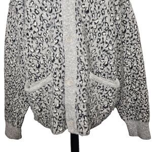 OVADIA NY Moses Oversized Cardigan. Men's Medium. Gray Heather Leopard. Merino Wool and Alpaca Blend. Pockets. Chest approximately 25 inches pit to pit. Length approximately 29 inches.