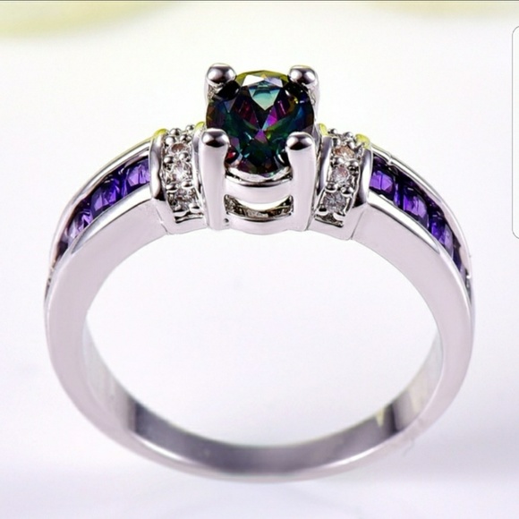 OVAL CUT RAINBOW AND WHITE TOPAZ CZ DIAMONDS AND AMETHYST GEM STONE RING!