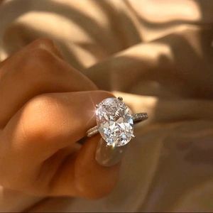 Free Shipping!!!!❤18 K WHITE GOLD OVAL WEDDING RING OVER 925 STERLING SILVER STAMPED OVAL RING / RING IS HAND CRAFTED WITH EACH STONE