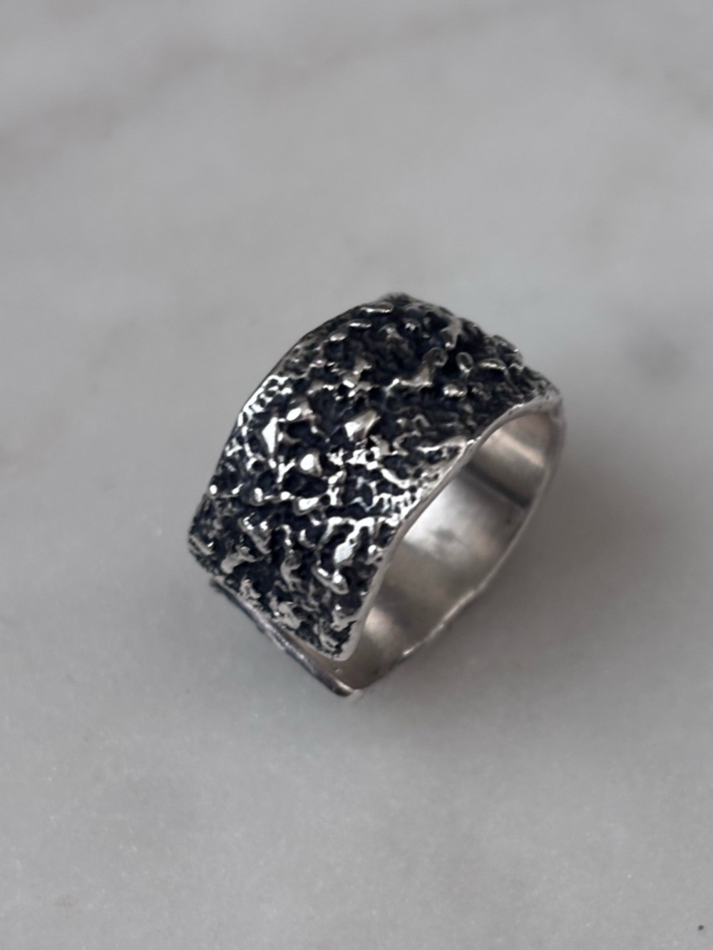 Textured silver ring from a previous Ovate collab. Flexible sizing, ranges from US 5-7, still very solid silver.