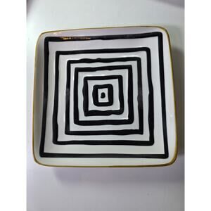 OVER AND BACK Black White Whimsy Appetizer Dessert Ceramic Square Plate Set of 6