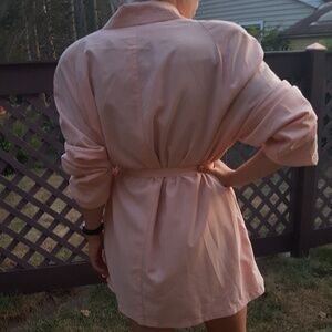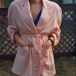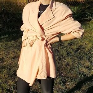 Oversize Italian trench coat in peach color. It doesn't have size on it but I think is XL. Model usually uses size small. Used only few times.<lb#3>
