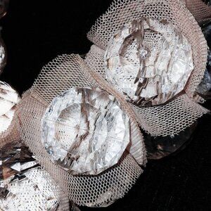 This beautiful oversized pink tulle and beaded necklace is a bold statement piece that brings out the softness and femininity of any outfit.