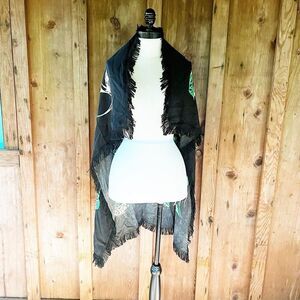 OVERSIZED TASSELED & FRINGED 40’s 40s Black Rayon Crepe Floral Piano Shawl Wrap