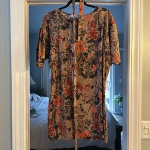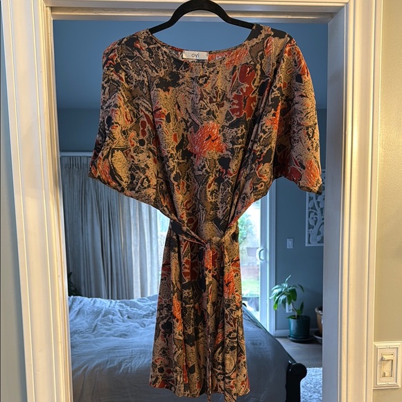 Embrace vibrant style with this colorful abstract dress. Perfect for any occasion. I wore it to work with leggings and boots. Would be perfect with bare legs too. Light and airy. Only worn once.