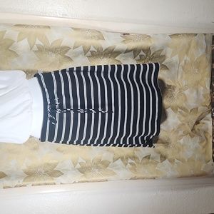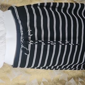 Black and White Striped OVI Skirt Ties in Front Elastic Waist