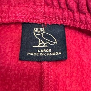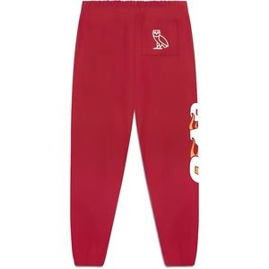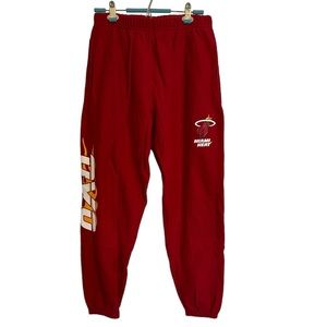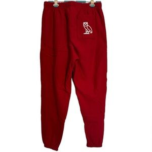 OVO x NBA Heat Fleece Pant in red, size large. Excellent condition. Drake's October's Very Own x Miami Heat sweatpants / joggers with front pockets and rear patch pocket, internal drawstring, cuffed ankles.