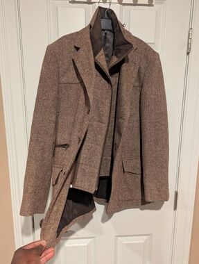 Has removable inner liner so it can be worn like a blazer, but zipper on right side is broken and I cannot remove it.