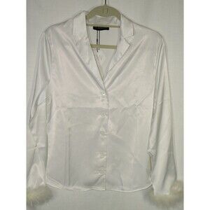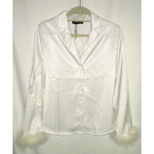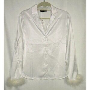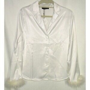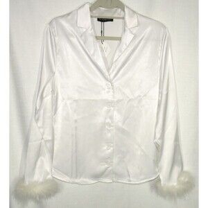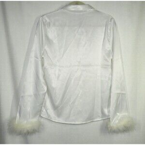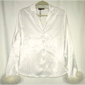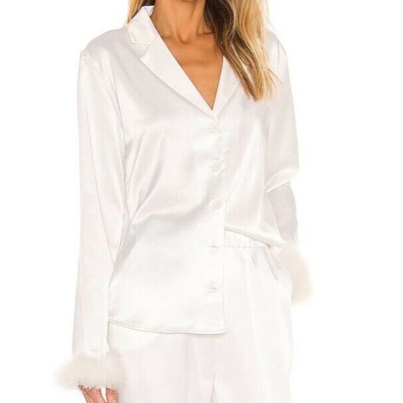 OW Intimates Revolve White Satin Ostrich Feather Trimmed Pajama Top Size 4-XS