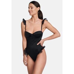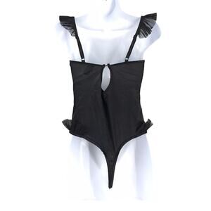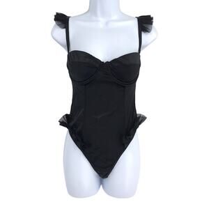 OW Intimates Sadie Bodysuit M Black Caviar Underwire Thong Ruffle Satin NWD NWT $125