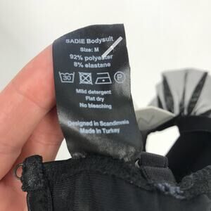 OW Intimates Sadie Bodysuit M Black Caviar Underwire Thong Ruffle Satin NWD NWT